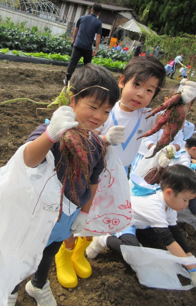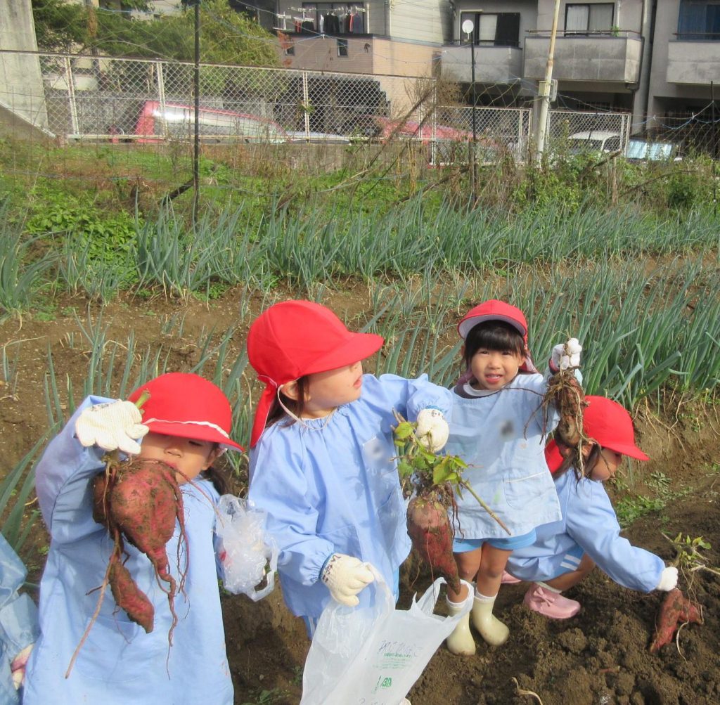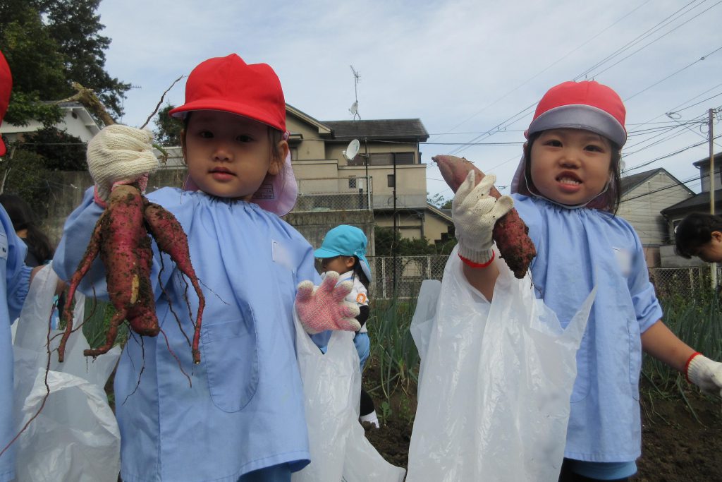 今日はこぐま組・つぼみ組・年少組で芋掘りに行きました