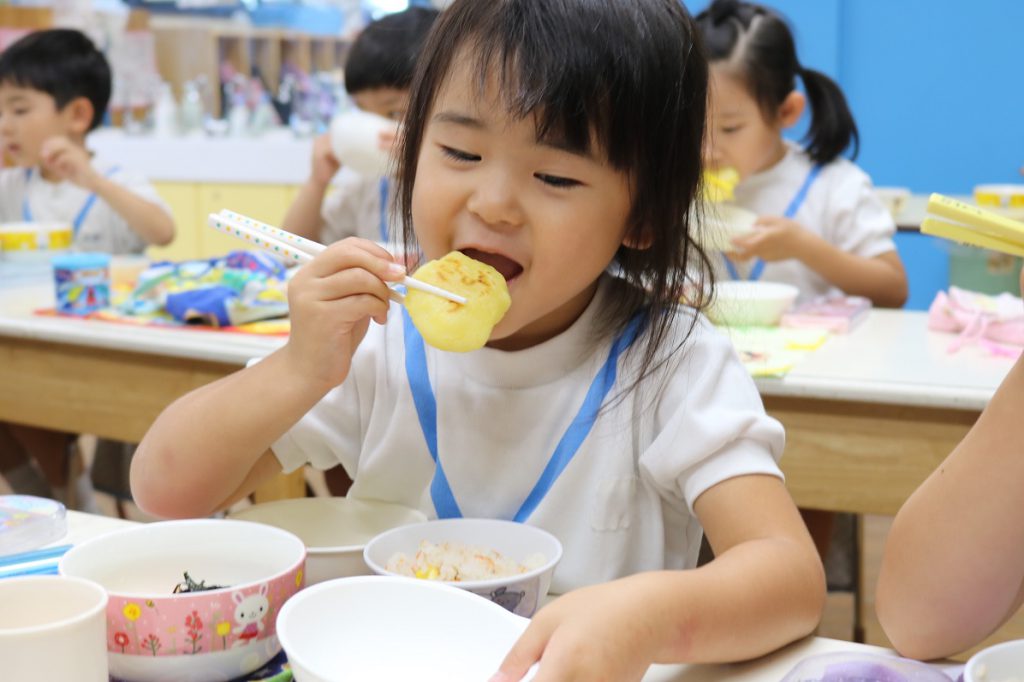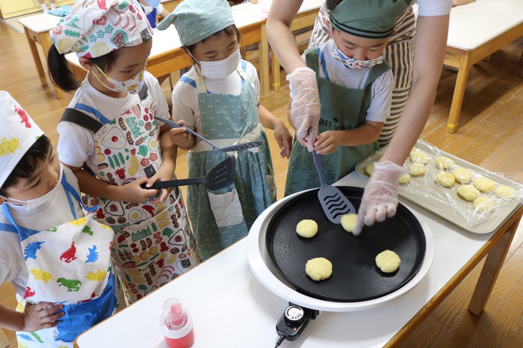 今日は麺棒を使ってジャガイモをつぶす係の子