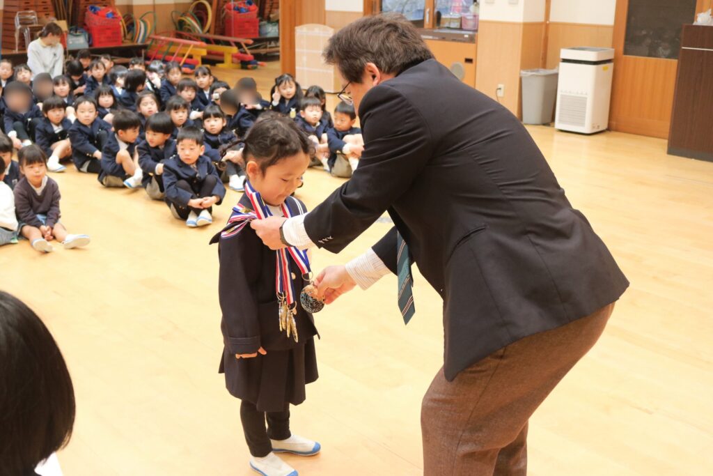 お部屋に戻って絵本100冊達成メダルの授与式もあり