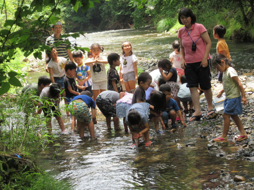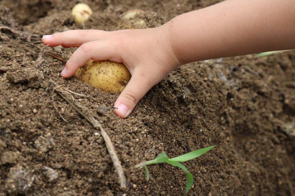 今日は、つぼみ組の園児が園の畑でじゃがいもの収穫をしました