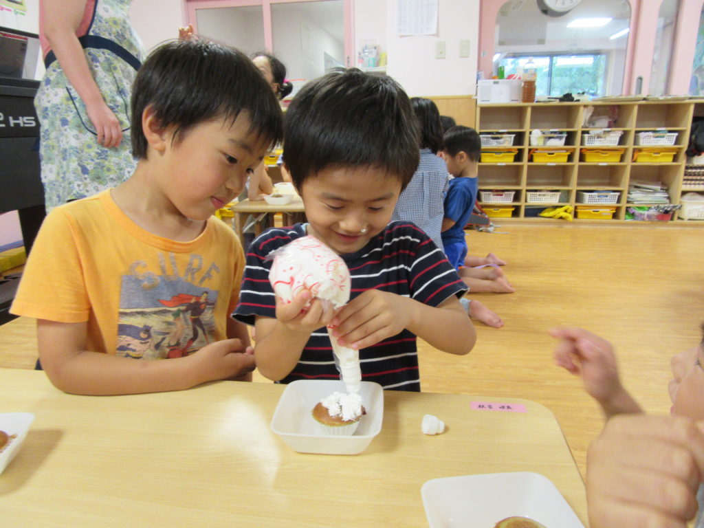 幼稚園に戻って「ブルーベリーカップケーキ」のクッキングに挑戦!