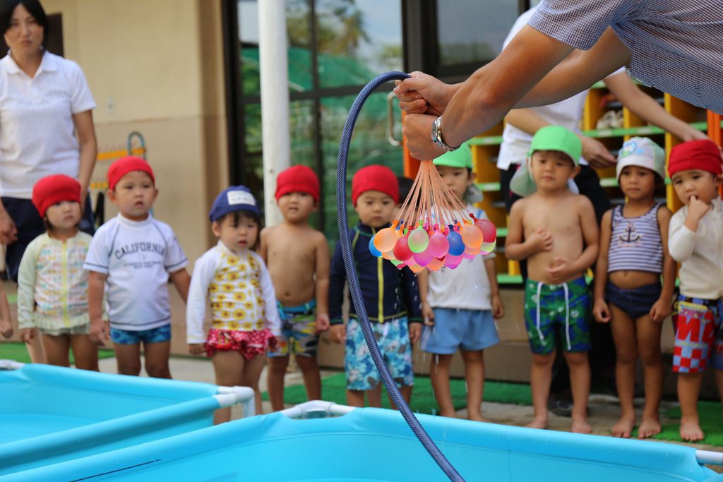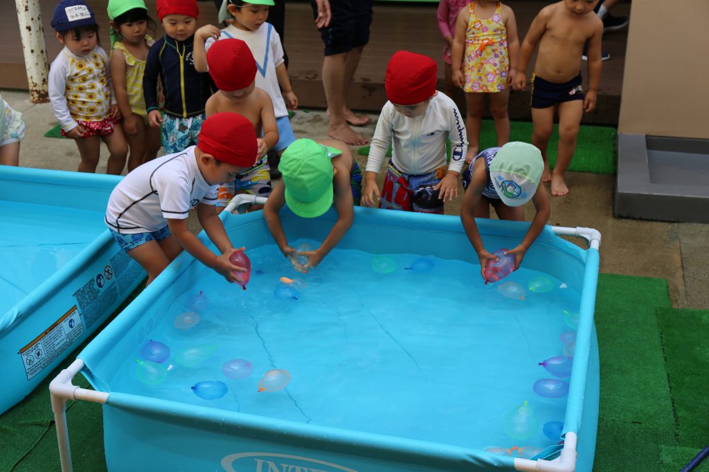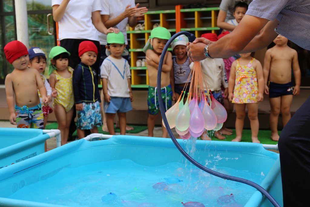 たくさんの水風船が一度に膨らんで、水の中に落ちるまでみんなドキドキ