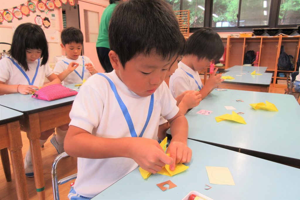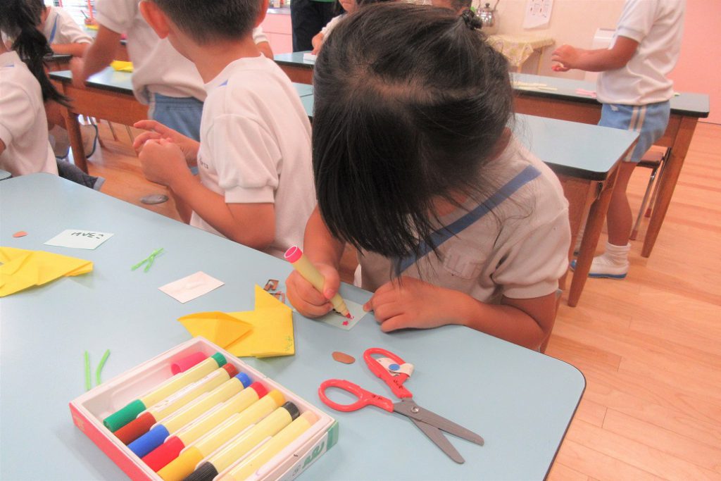 折り紙を折るのも、モールの鼻を作ってボンドで貼るのも、自分の名前を書くのも