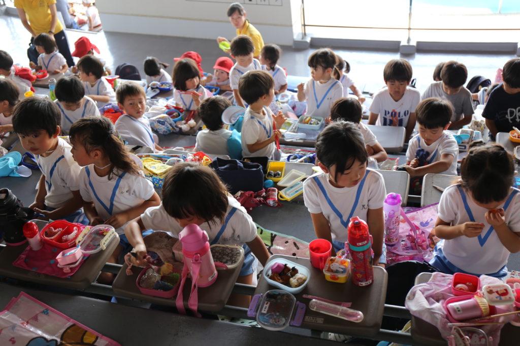 子どもたちも汗びっしょりで髪の毛が額に はりつきつつも、