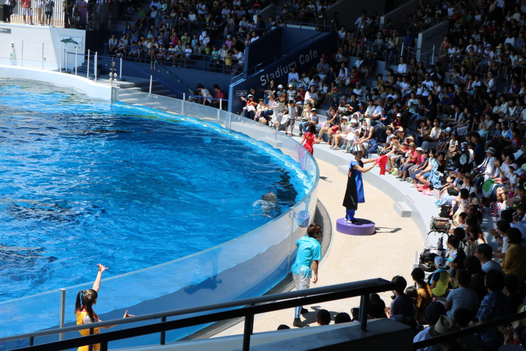 ショーが始まると、司会のお兄さんお姉さんの問いかけに元気に応えていました