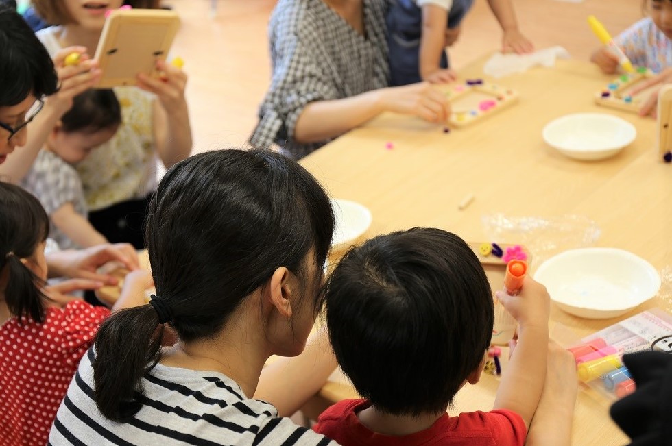 9組の親子の方が参加していただき、かわいい消しゴムやモールを使って