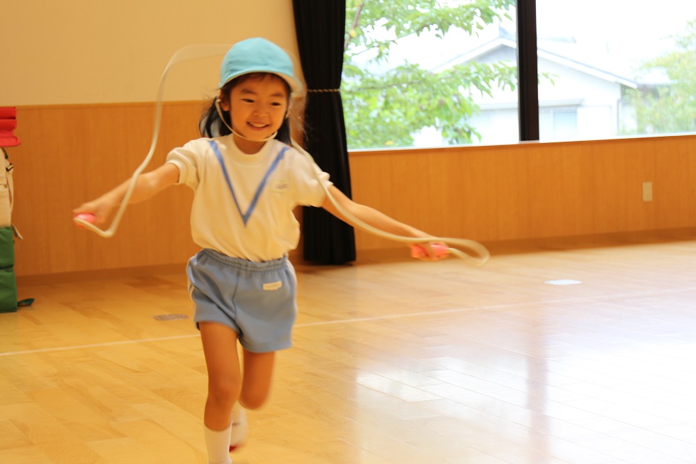 年中組の今日の体育専科レッスンは、側転と縄跳び