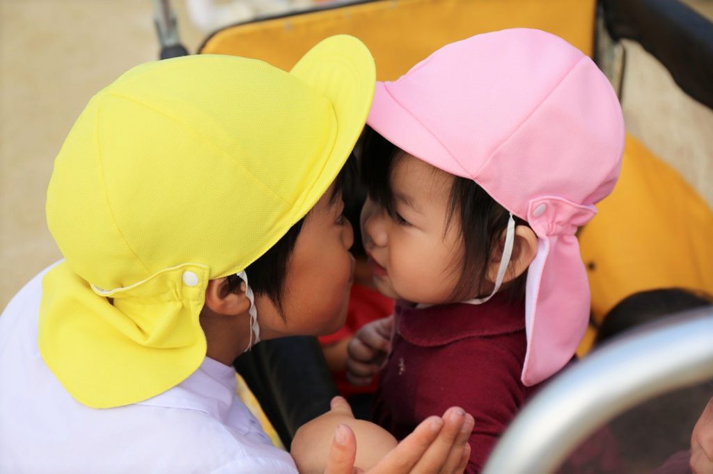 「かわいい~」と小さいお友達のお世話をしてくれる年長さん