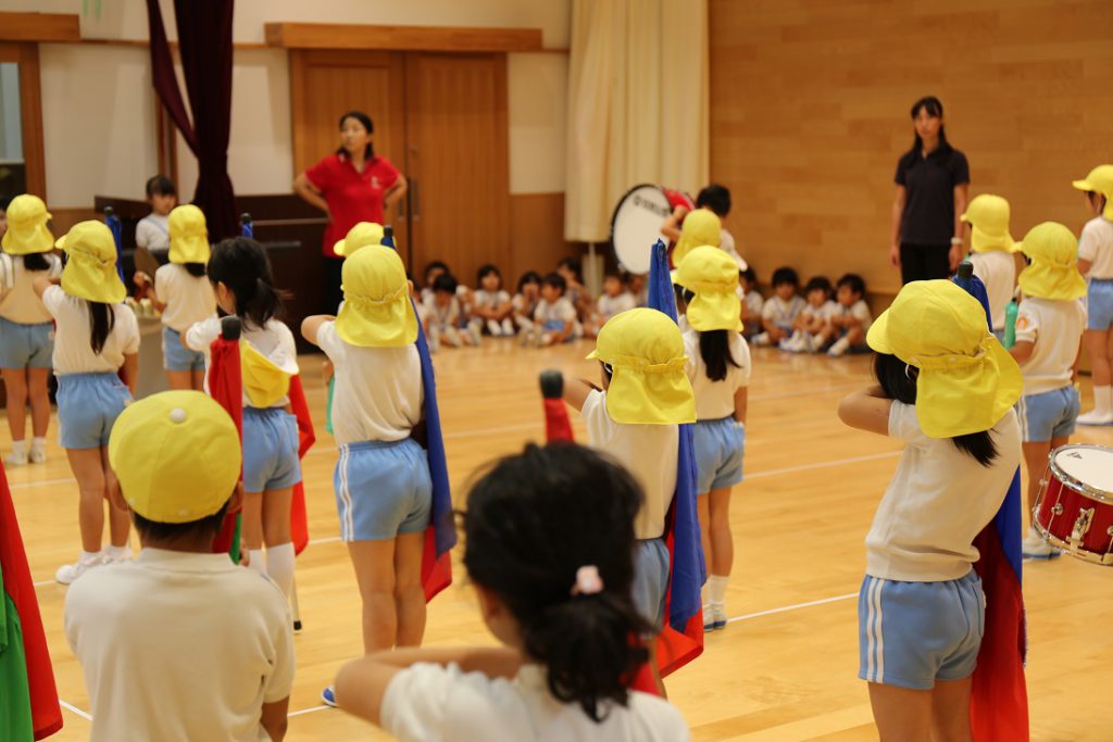 遊戯室で年長組が鼓笛隊の練習に励んでいました