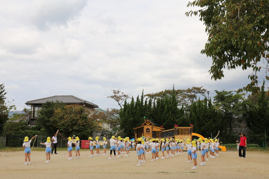 園庭では年長組が、
