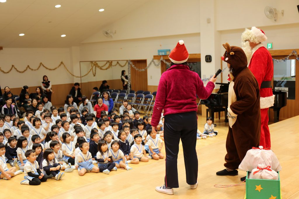 サンタさんへの質問を真剣に聞く姿や、サンタさんが持っている白い袋に嬉しさを隠せない子どもたちの姿が見られました!