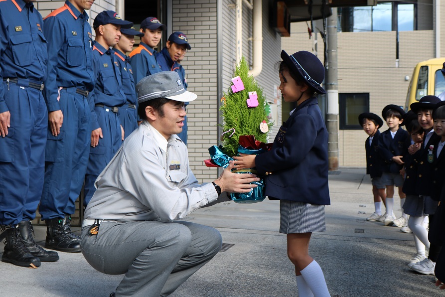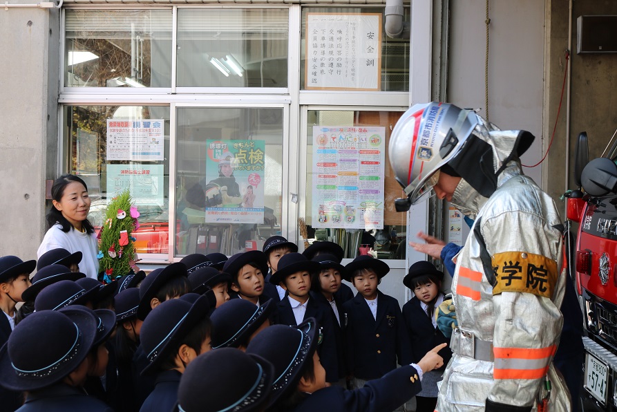 今日は、すずらん組(年長組)が左京消防署と修学院消防出張所に感謝訪問