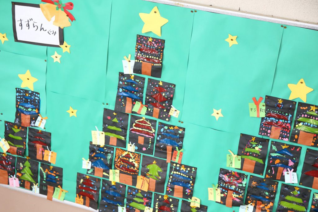 今年はさくら組の生駒先生と同じ高さのクリスマスツリーを飾っています