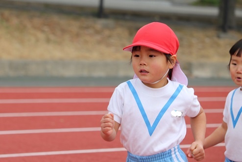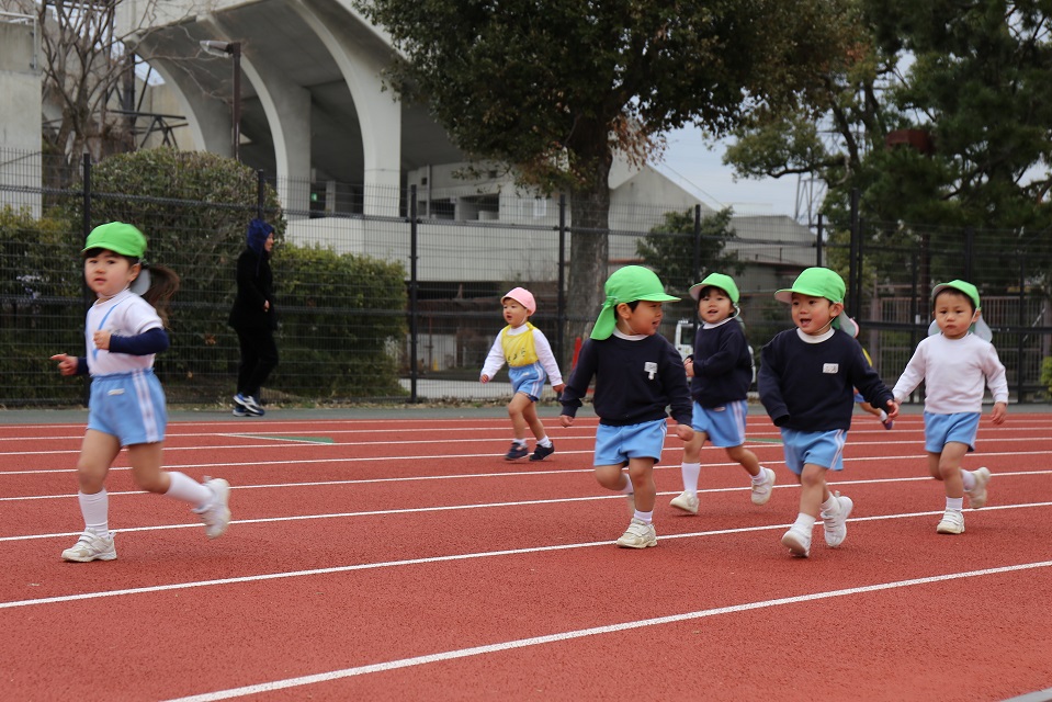 続いて年少さん。1周400メートル、ぐんぐん進みます!