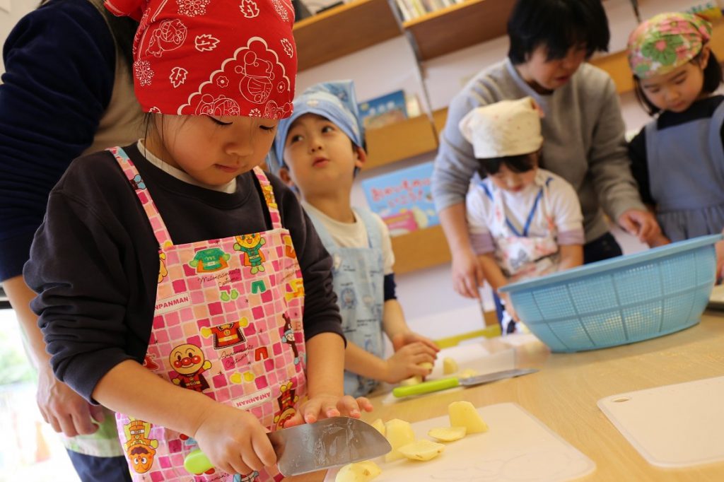 いつもは笑顔の絶えない年長さんですが、今日ばかりは真剣な表情で歯を食いしばります。