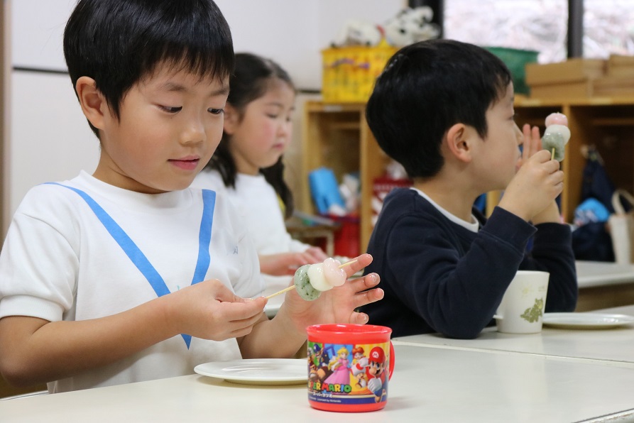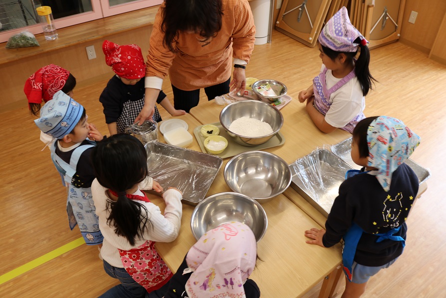 団子づくりをまだかな~まだかな~と言って時計を見ながら楽しみにしていた子どもたち