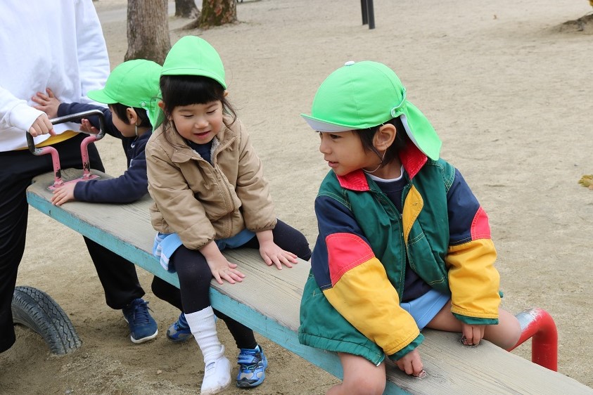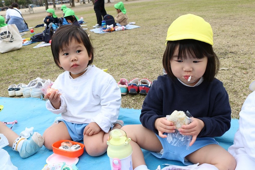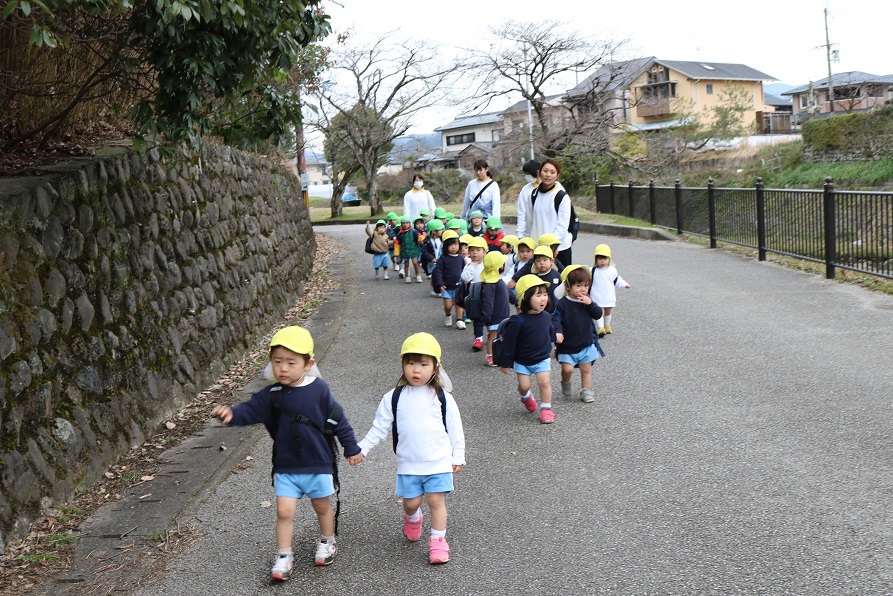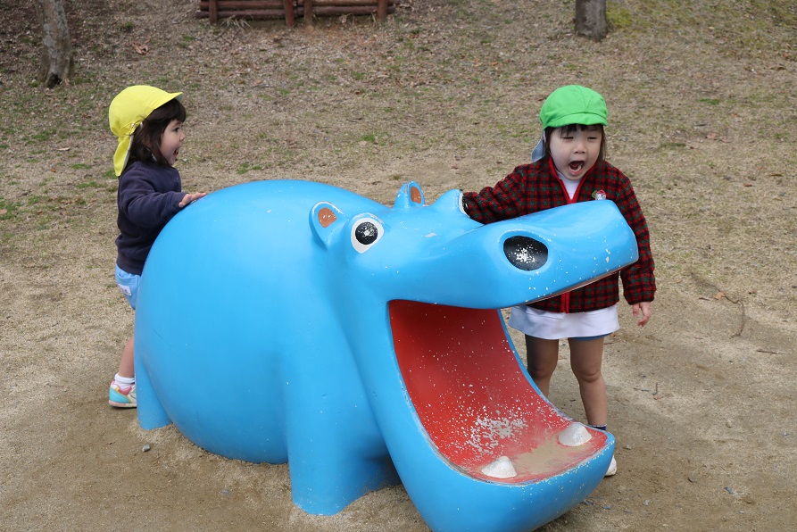 今日はこじか(1歳児)・こぐま(2歳児)組で宝ヶ池公園に遠足に行きました
