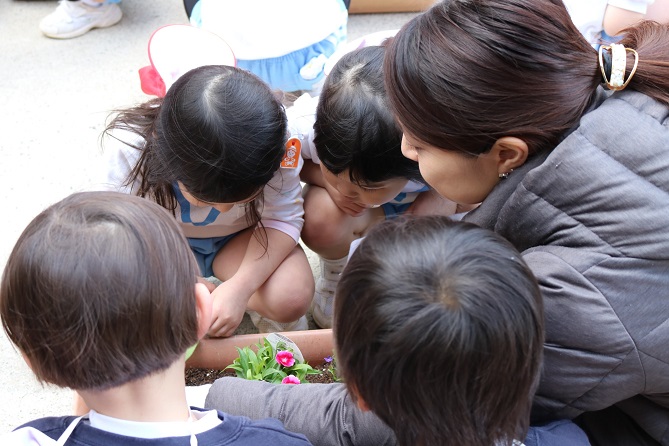 「今日はお花を植えるんだよね」