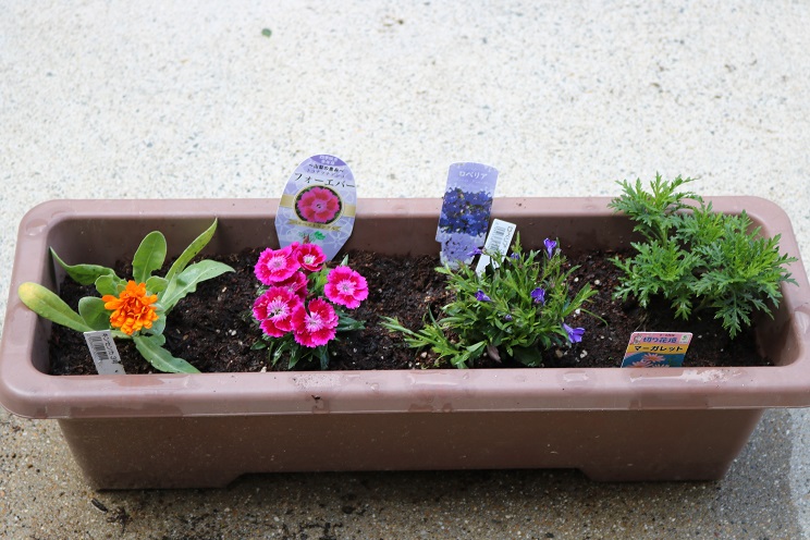 考えながらも、自分たちで苗からプランターに移すことができました
