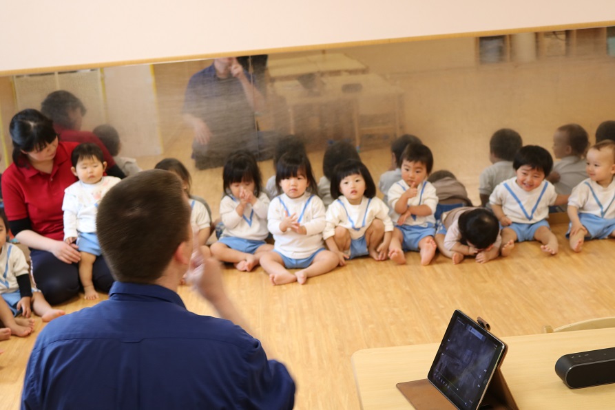 落ち着いて参加でき、英語の歌では手足を動かし楽しんでいる様子でした