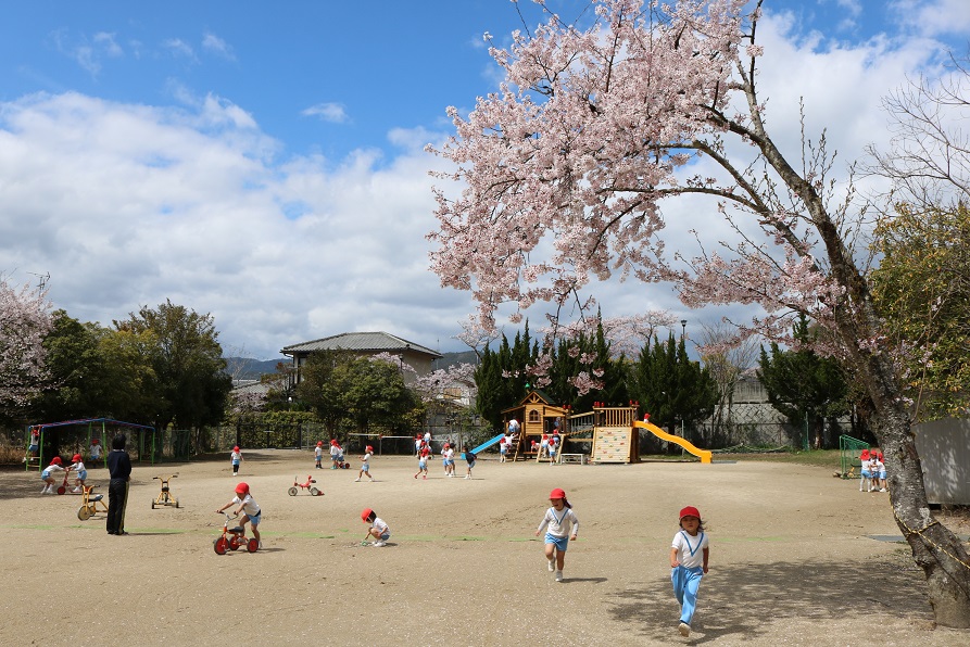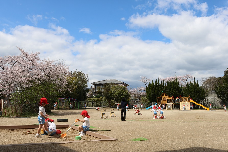 子どもたちは園庭に出て走り回り