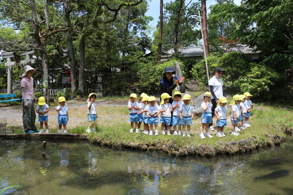 今日は隣の遊戯室で0・1・2歳児が体育遊びをしていたので、一緒に参加
