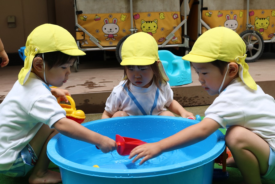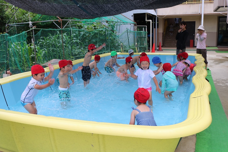 予約はいりませんが、テラスや園庭でぬれたり泥だらけになって遊びたいと思いますので、水着または濡れてもよい服装でお越しください!