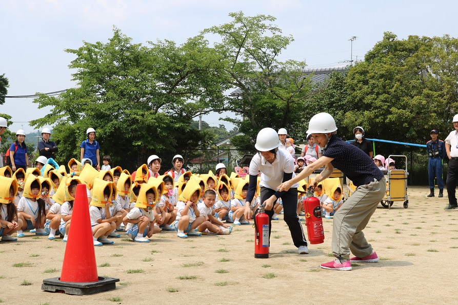 職員たちは今月に入って、消防隊員の指導の下
