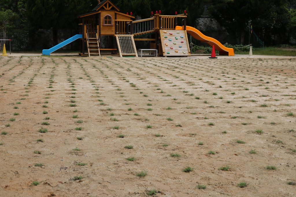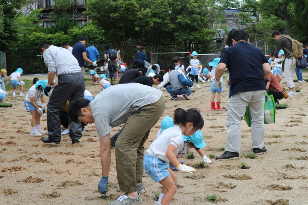 「穴はどこ?」と探しては苗を置いて、土をかぶせ、足で踏んで・・・出来上がり!!