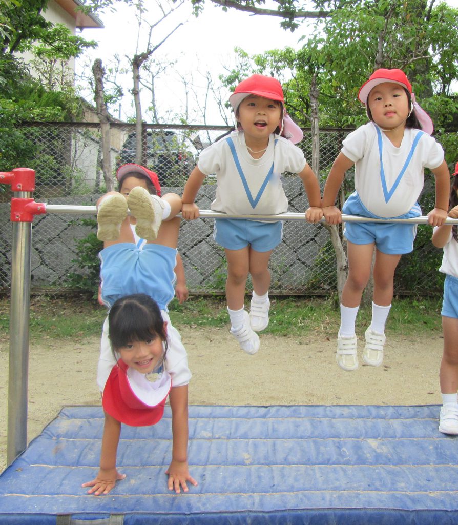 鉄棒でぶら下がっている女の子