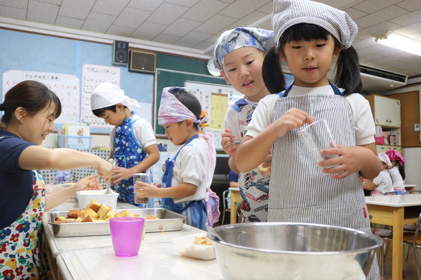 年中さんは初めての包丁にドキドキ
