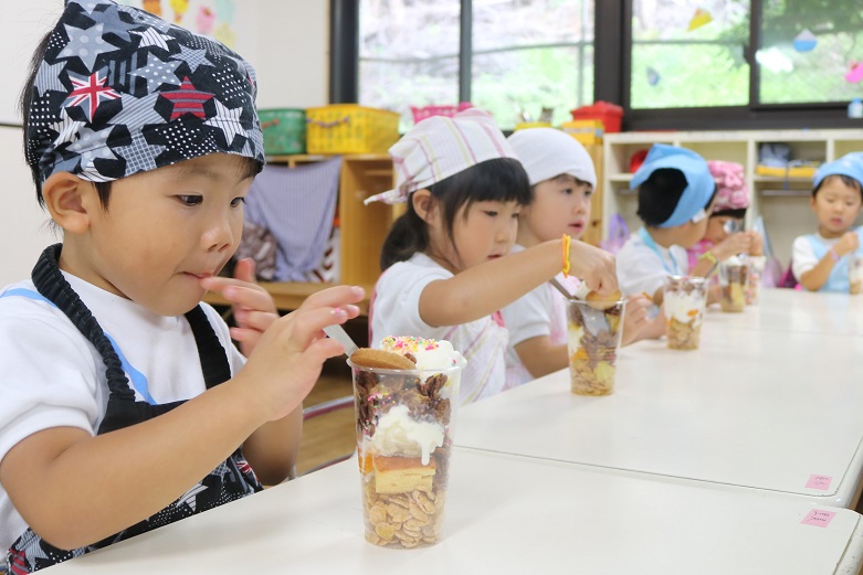 サマースクール3日目は、「パフェづくり」