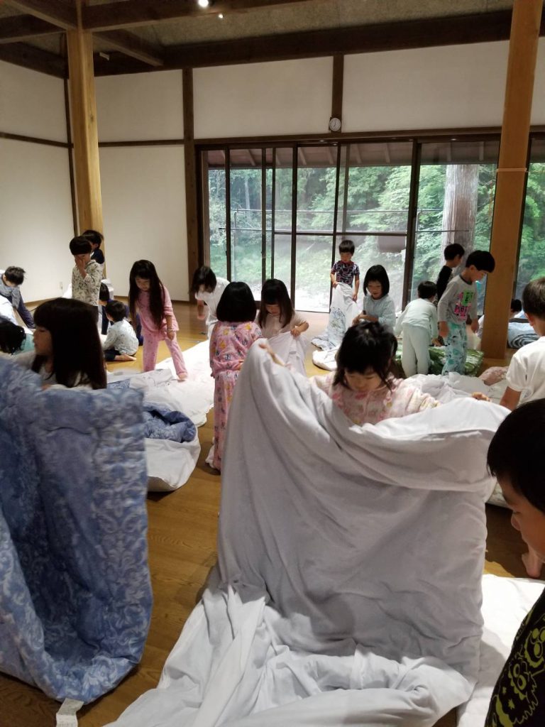 自分たちでお布団もたたみます