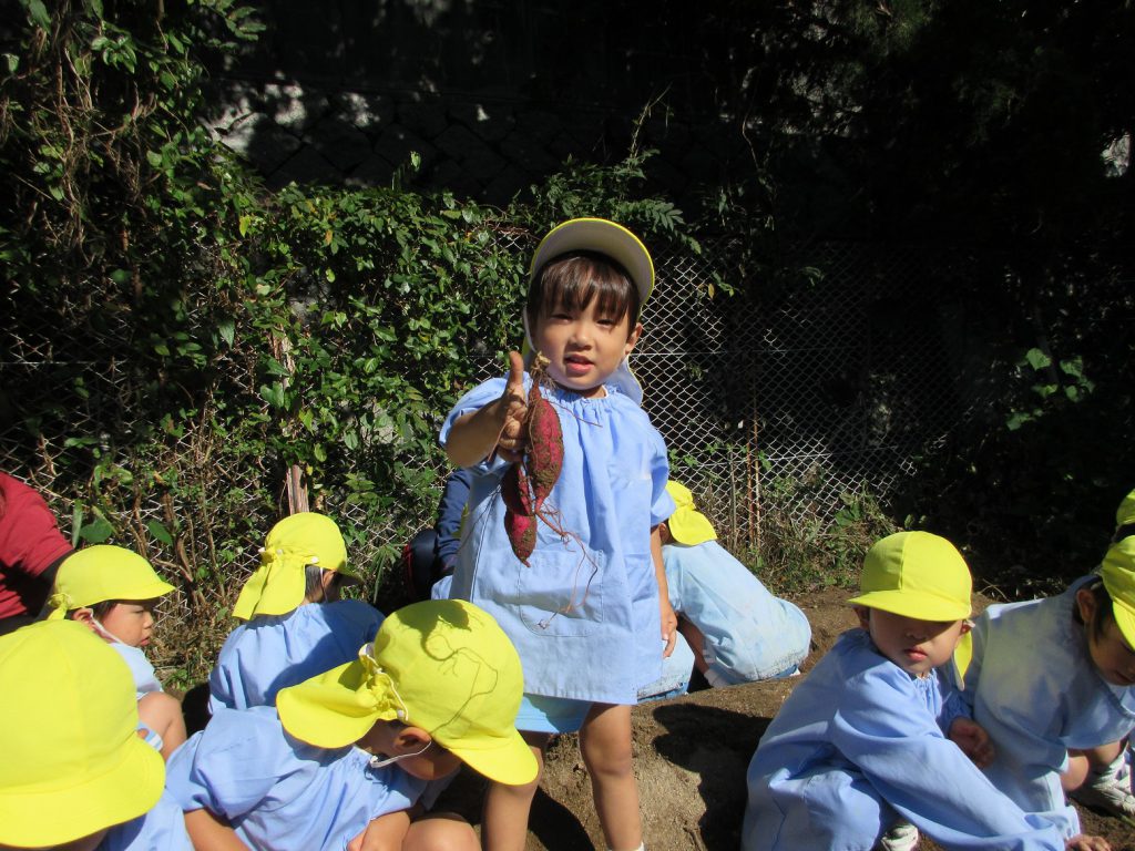 今日はいいお天気の中、0歳~2歳児のクラスが園庭の畑でお芋ほりをしました☀