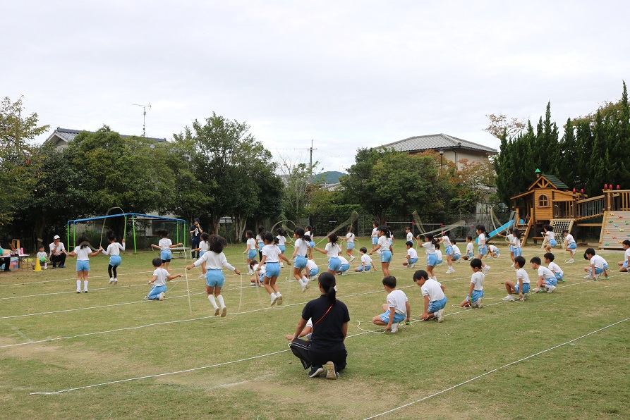 午後の園庭でも活力にあふれ、ありあまるエネルギーで