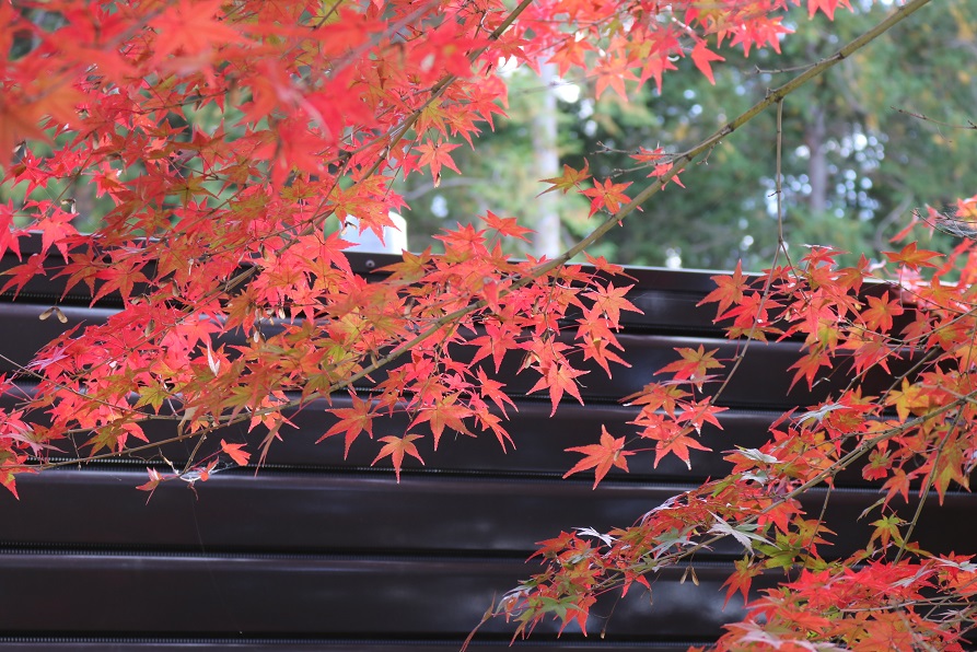 正門の紅葉がきれいに色づき