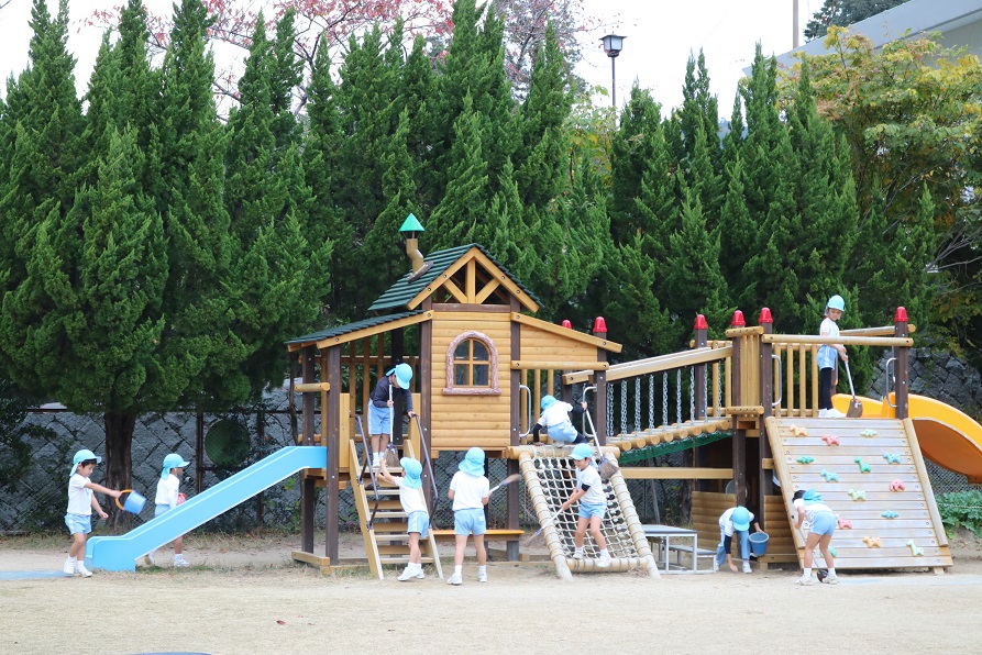 園庭をきれいにするのが毎日の日課です