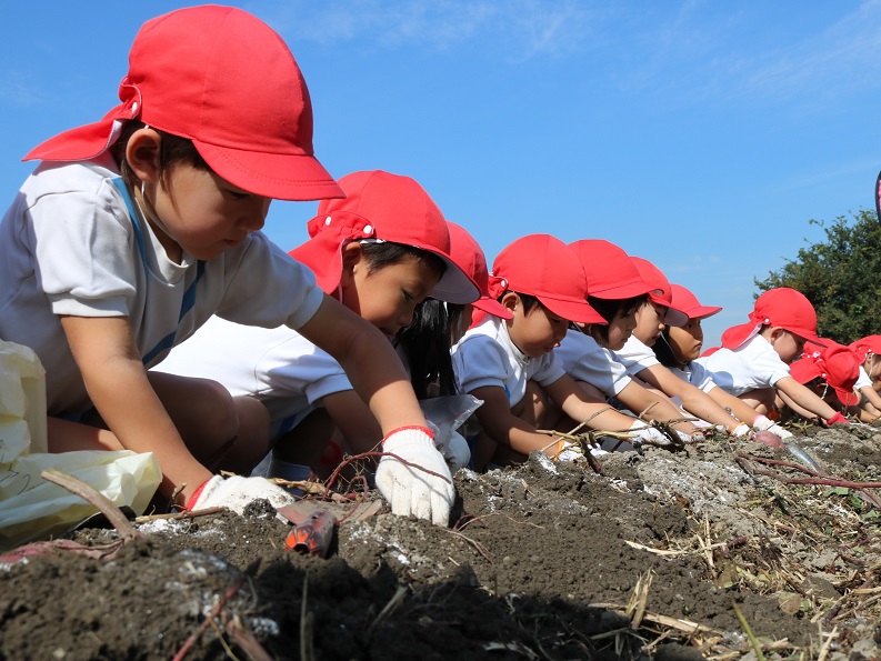 すずらん組・たんぽぽ組・もも組でお芋ほりに出かけました