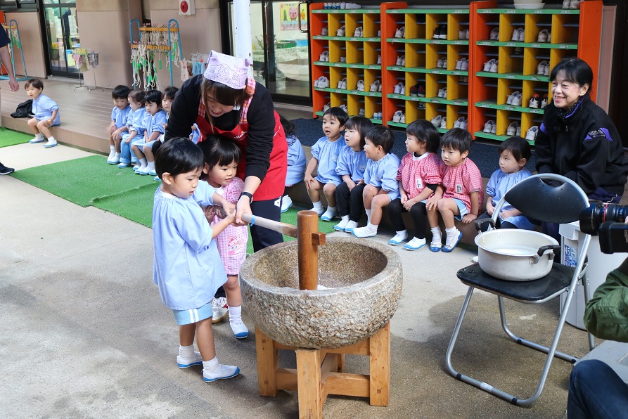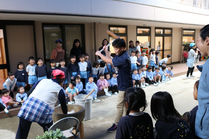 今日は、年末のイベントおもちつき大会!
