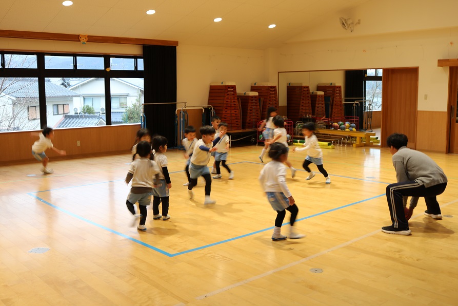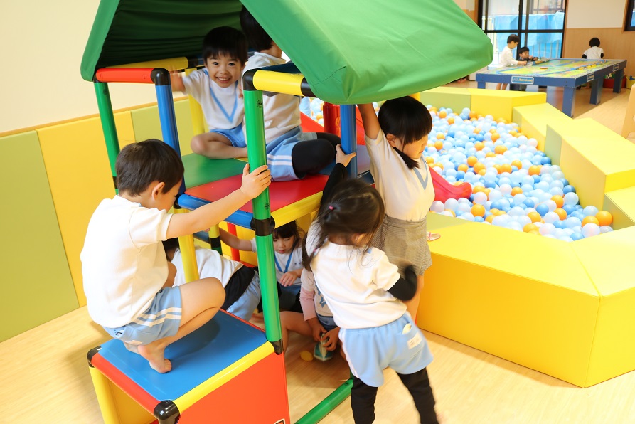給食のあと遊戯室で過ごす年少組のみんな