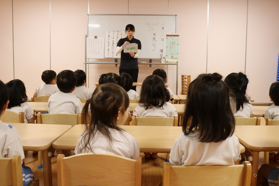 となりの保育室ではこぐま組(2歳児)が日課中
