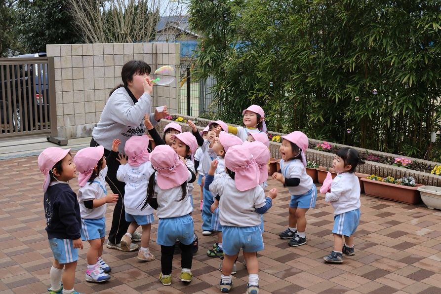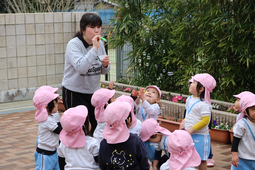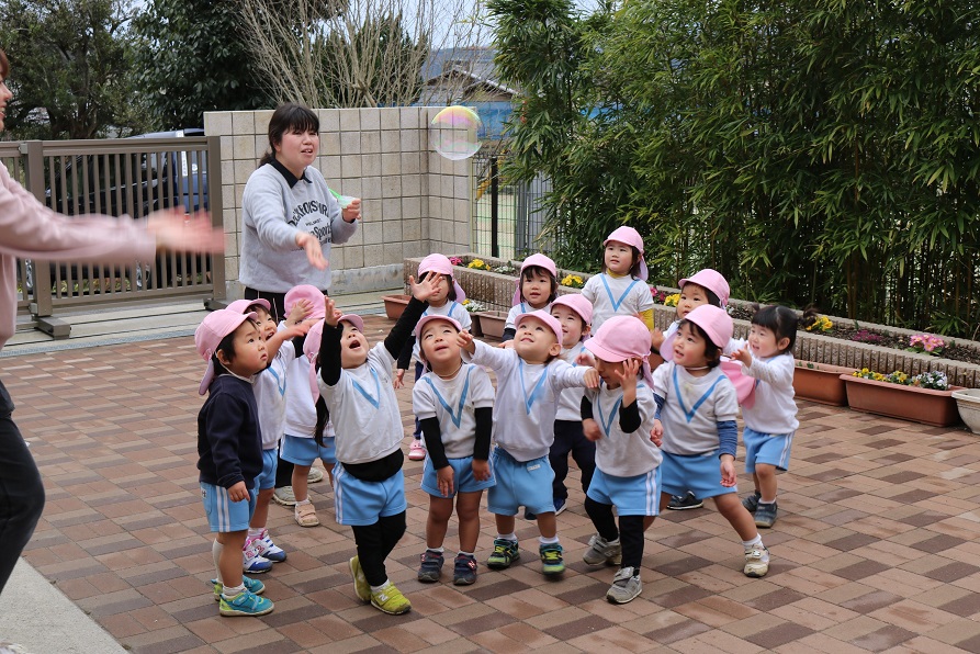 こじか組(1歳児)のみんながシャボン玉に夢中でした