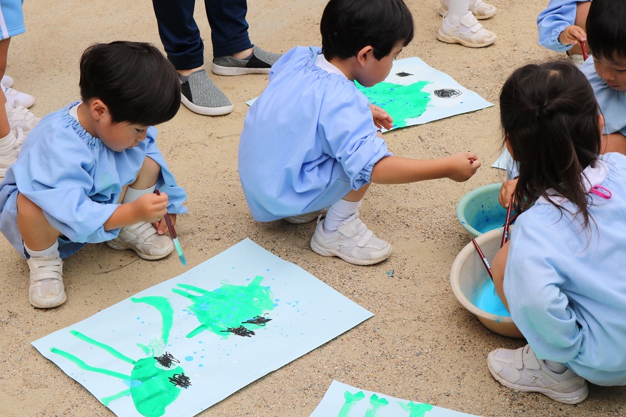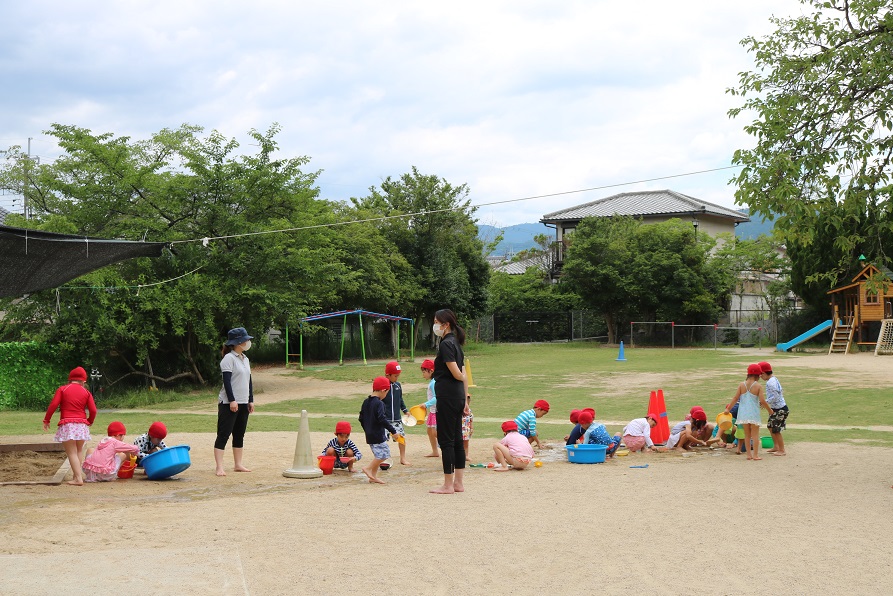 年少・年中・年長組と、時間をずらしながら泥遊びと水遊びを楽しみました