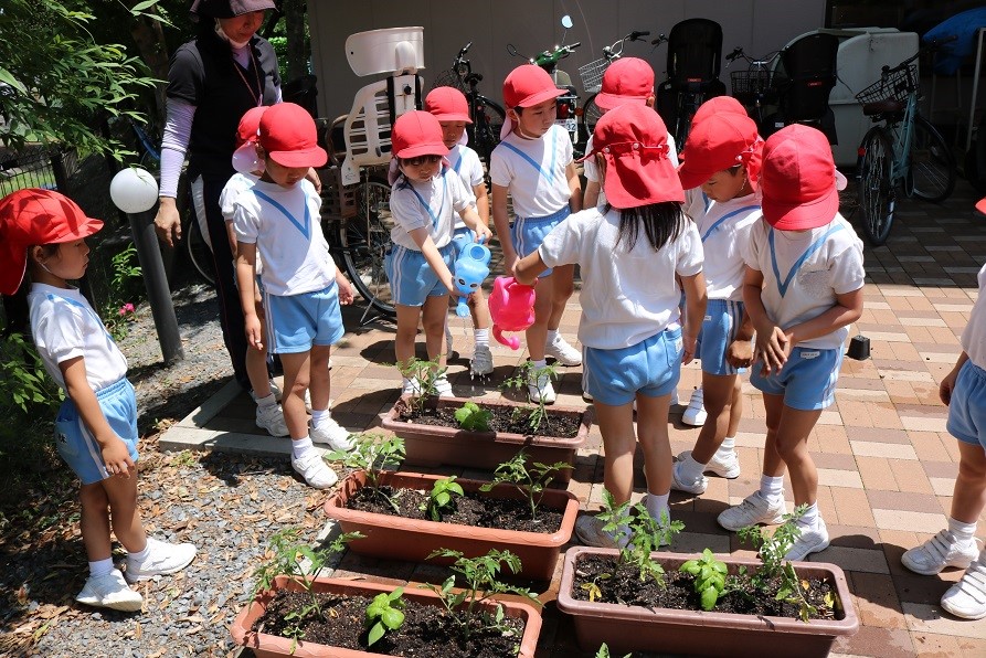 そして、一番大きな年長なでしこ組は、今日はトマトの苗を植えました
