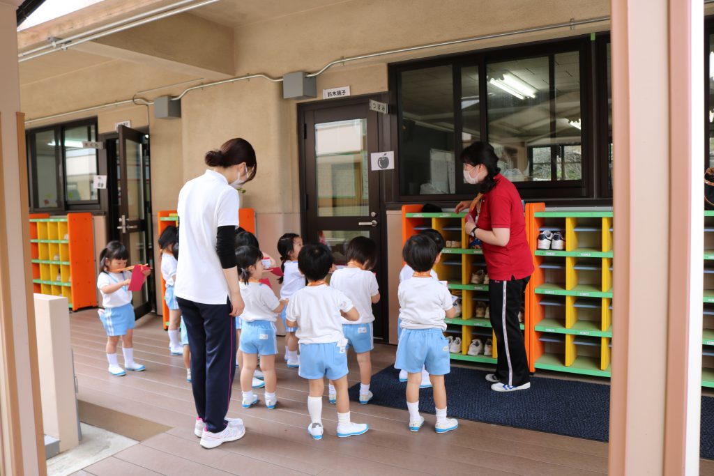 今日が初めてや、久しぶりの園児がたくさんいるので、泣いてお母さんから離れられないかな、大丈夫かな、と心配していましたが・・・