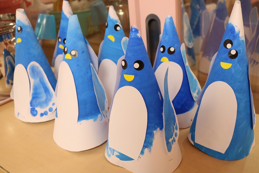 とってもかわいいペンギンがお部屋に並んでいて、子どもたちも嬉しそうです
