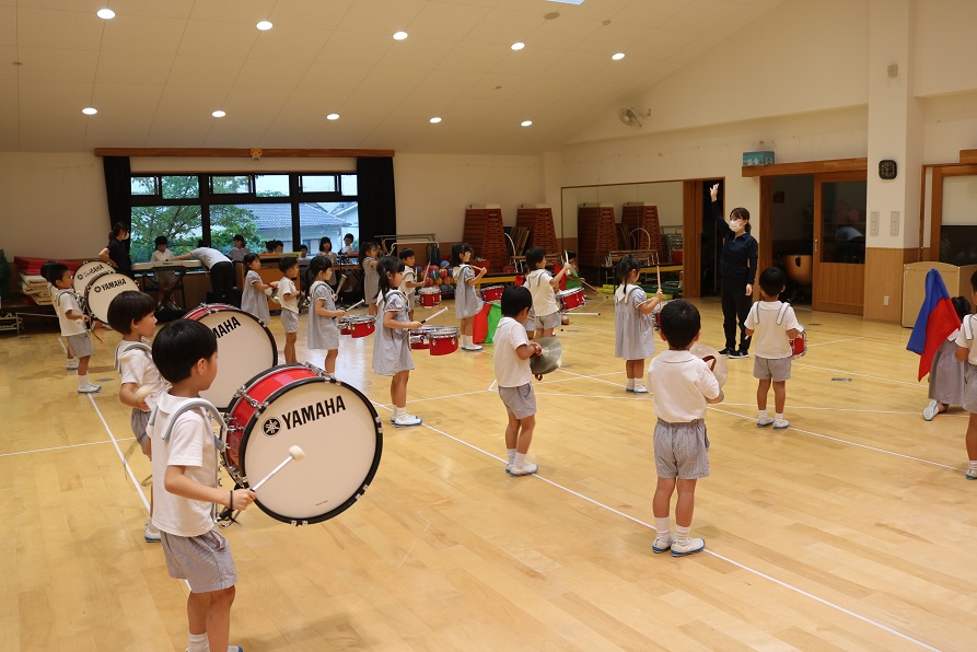 運動会で演奏する鼓笛の練習に取り組む年長組