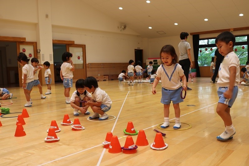 遊戯室で園長先生のお話を聞いた後は