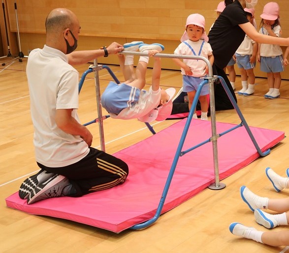 今日のつぼみ組の体育専科は鉄棒運動でした