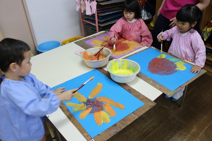 花びらは黄色だけではなくオレンジ色も使って色を重ねます
